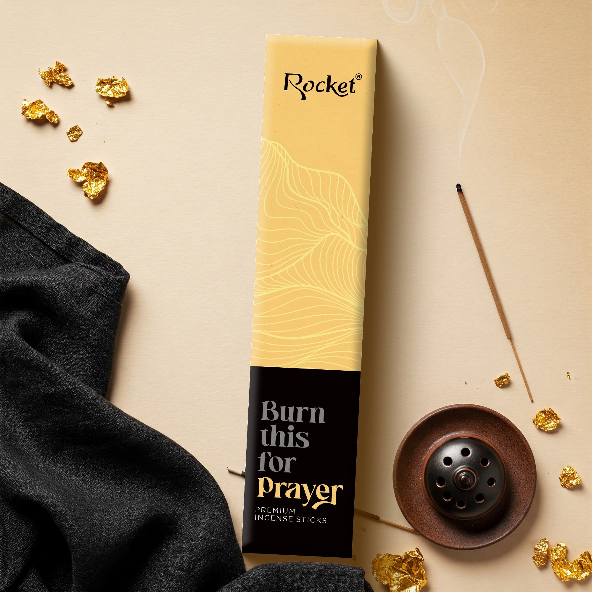 Enhance your spiritual practice with "BURN THIS FOR PRAYER" incense sticks from Rocket Agarbatti. Thoughtfully crafted to create a serene and sacred atmosphere, these premium incense sticks are made from natural ingredients that promote focus and tranquility during your prayer and meditation sessions.