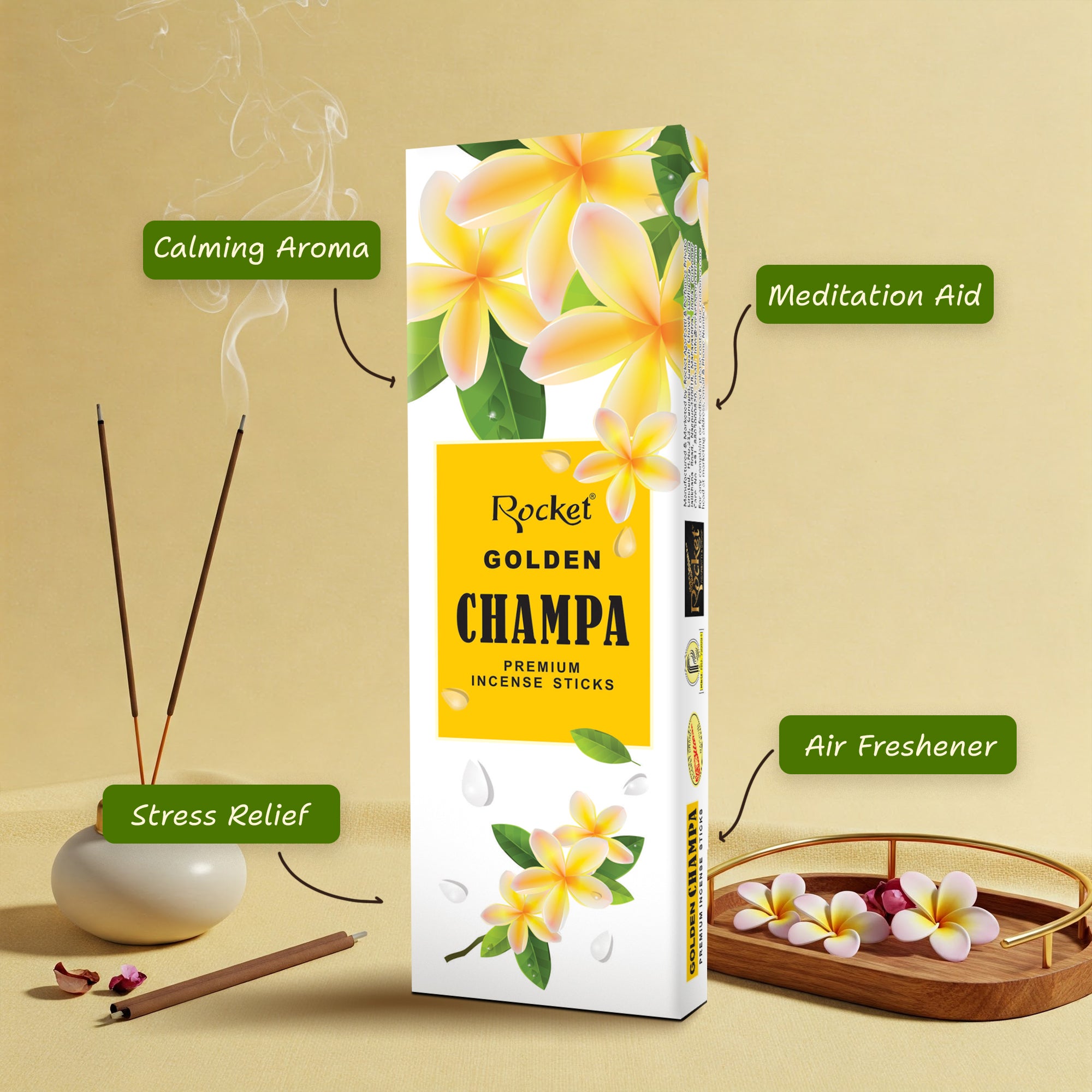 GOLDEN CHAMPA agarbatti is a premium incense offering that captivates the senses with its enchanting fragrance. Crafted...