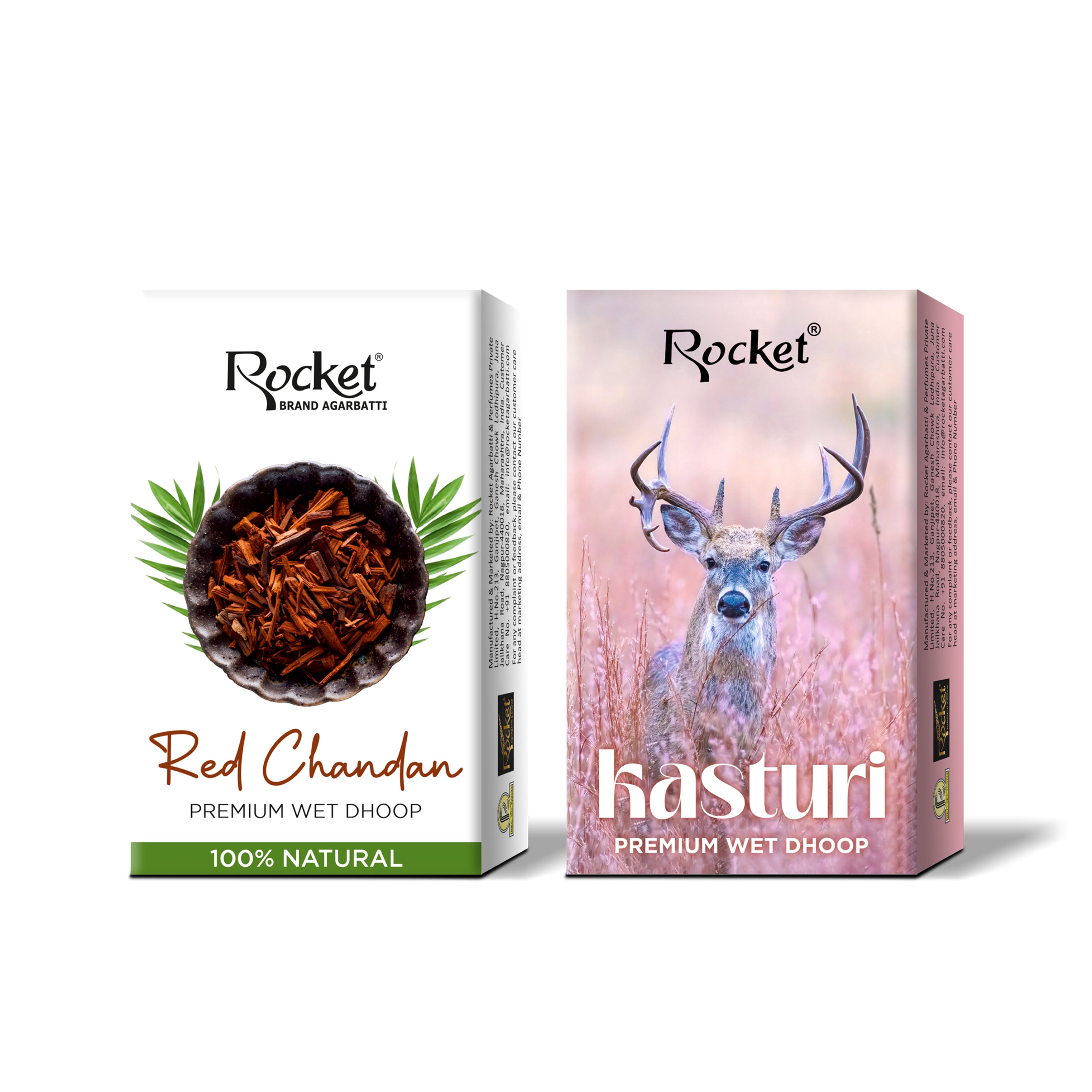 🌺 Dual Fragrance Pack: Includes 1 pack each of Kasturi and Red Chandan wet dhoop sticks.