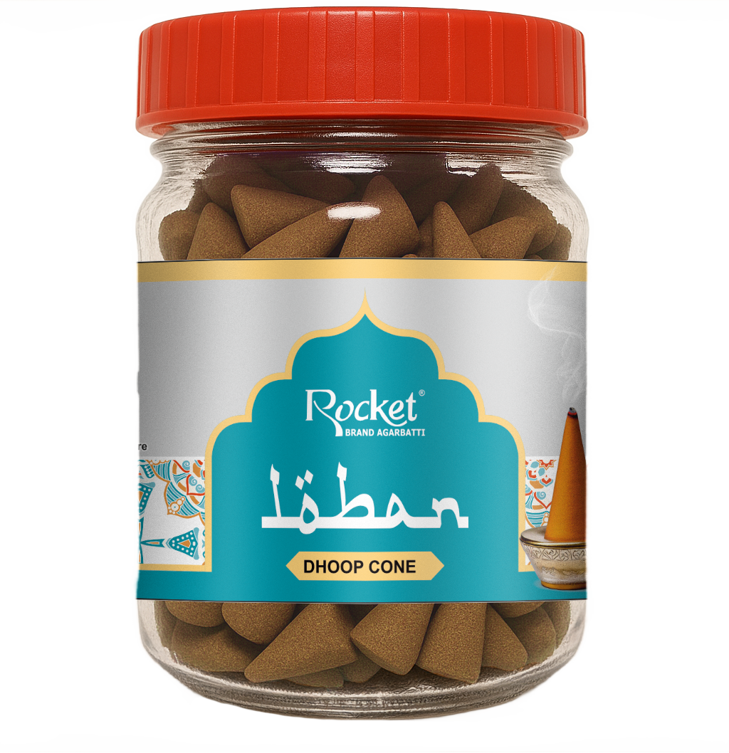 Rocket Agarbatti Loban Dhoop Cone Jar is crafted to deliver the traditional, sacred aroma of loban, known for its purifying and calming properties. Each cone burns evenly and releases a steady fragrance that enhances devotion and cleanses the atmosphere.